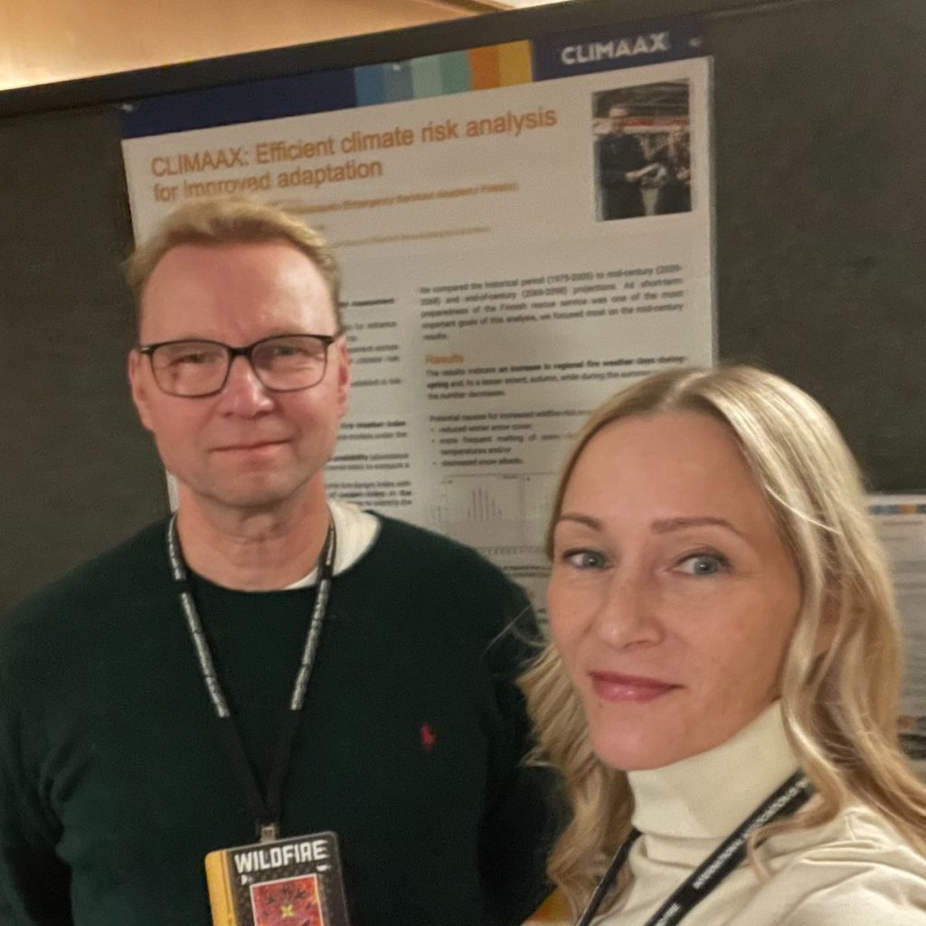 Juha Laitinen and I [Riikka Salmi, Pelastusopisto – Ed. note] had the honor of presenting the poster of the pilot results of project CLIMAAX at this international conference. This conference hosted 400 participants from 15 different countries. The program featured a wide range of presentations and posters covering various themes, along with a strong presence of exhibitors.